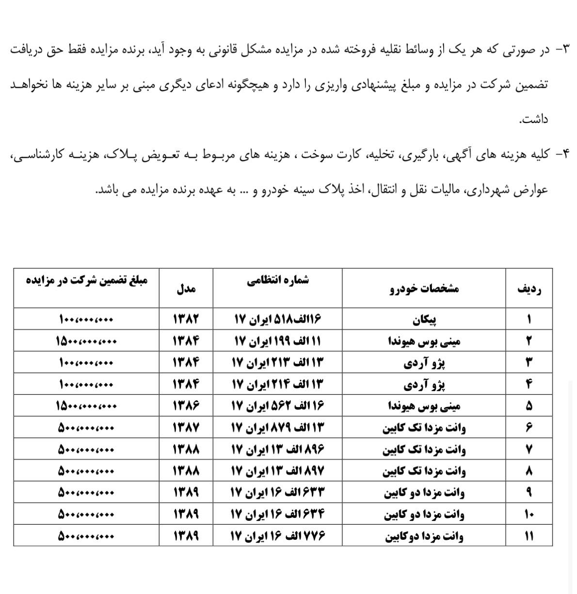 مزایده اینترنتی از طریق سایت ستاد برگزار میشود. سلام ارادت مزایدات منتشر شده در سایت مزایده لند از منابع رسمی انتشار مزایدات استخراج میشود و این آگهی ها همه بدون تصرف و تغییر انتشار داده میشود.برای خدماتی که ما میتوانیم در خدمت باشیم از طریق کانالهای ارتباطی ما در واتساپ، تلگرام، اینستاگرام و پلتفرم های ملی مثل روبیکا و بله اقدام بفرمایید.شماره 09053333516 بر روی تمامی این شبکه ها فعال است.در صورت شرکت کردن مستقل در مزایدات لطفا توجه به هزینه ها و ریسک های موجود داشته باشید و تحلیل های درست را ابزار پیشنهاد قیمت قرار دهید.