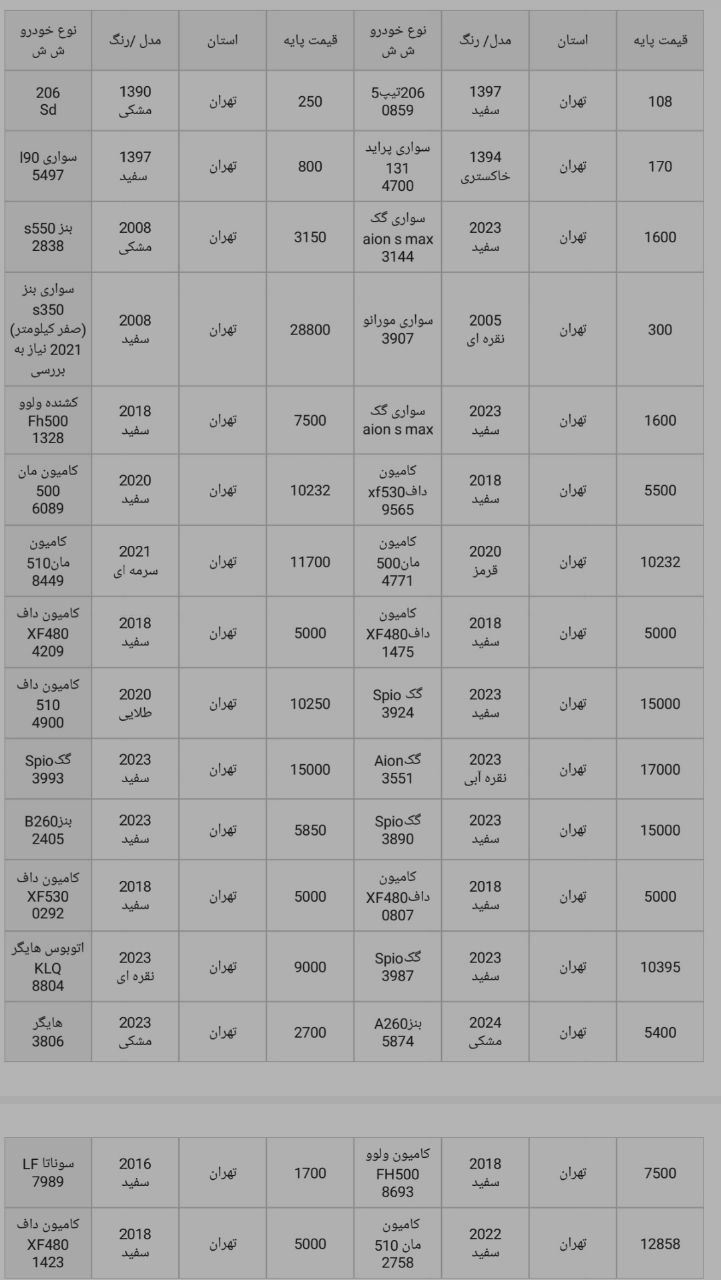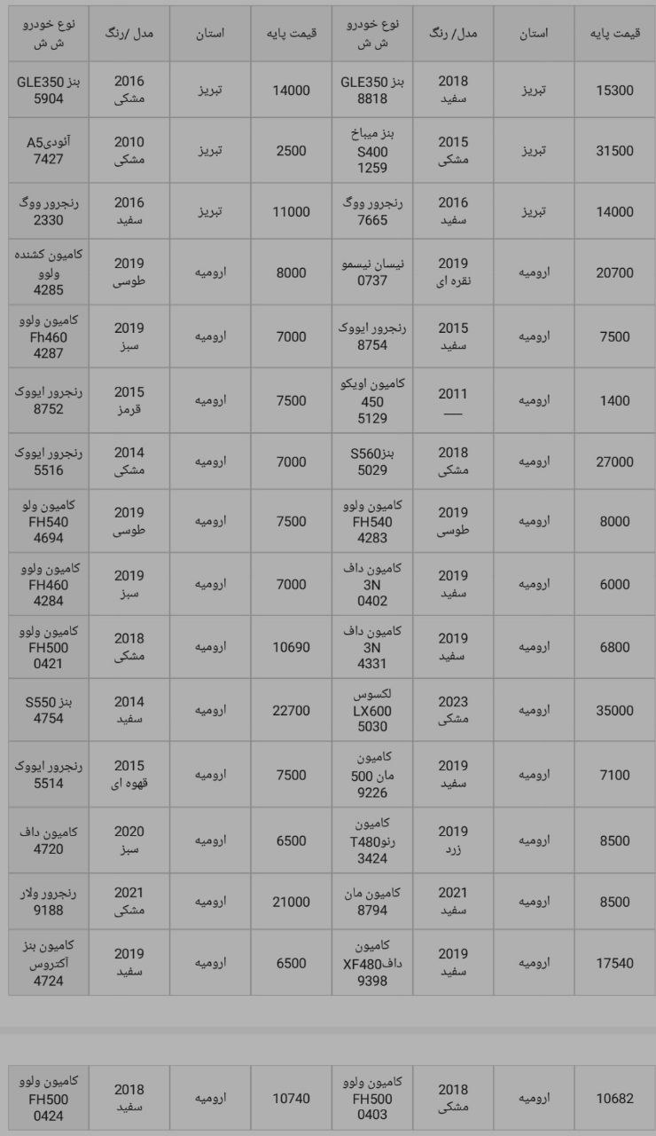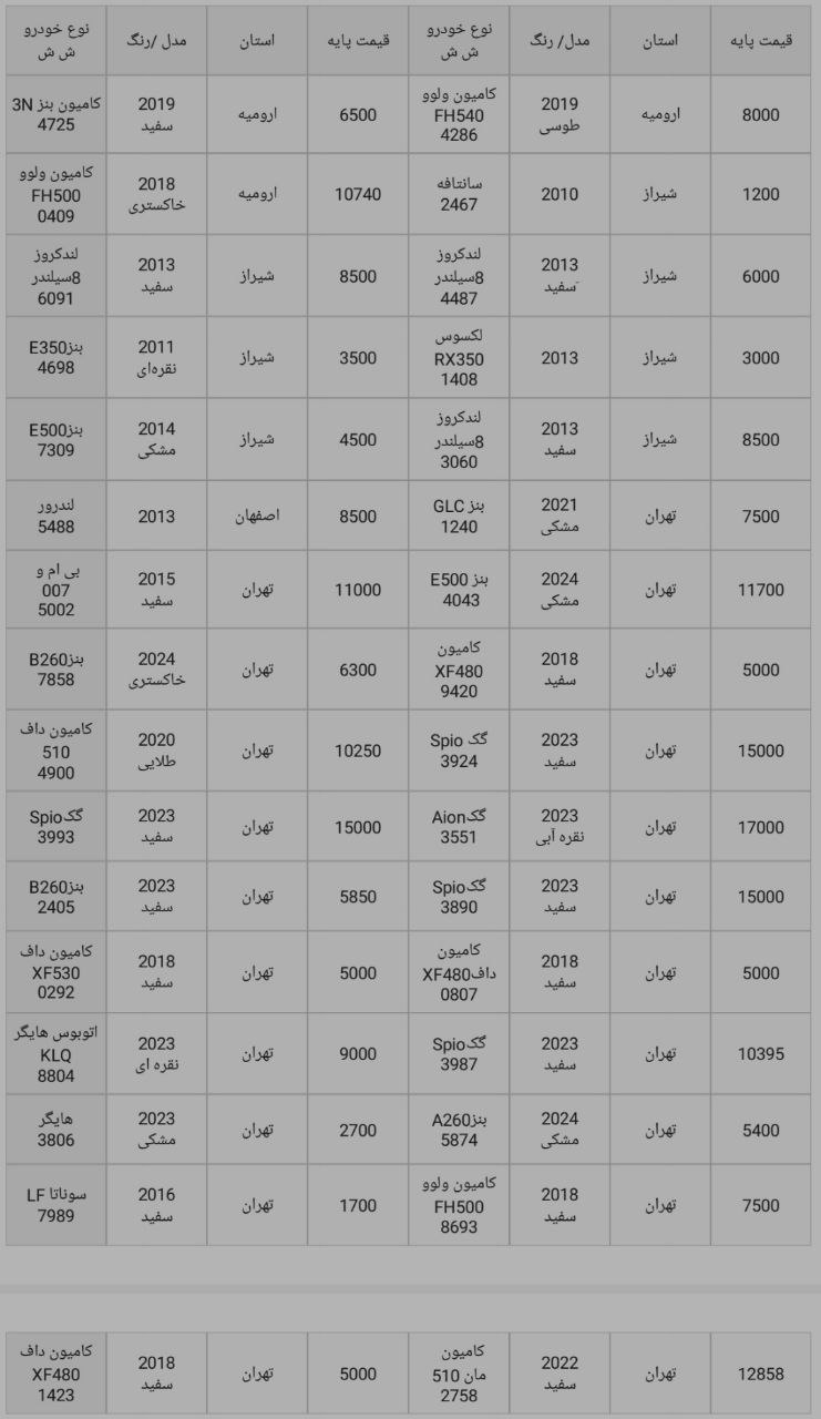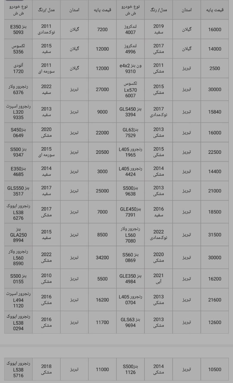 سلام ارادت مزایدات منتشر شده در سایت مزایده لند از منابع رسمی انتشار مزایدات استخراج میشود و این آگهی ها همه بدون تصرف و تغییر انتشار داده میشود. برای اطلاعات آدرس، زمان و مکان مزایده متن آگهی را ملاحضه و مطالعه بفرمایید. برای خدماتی که ما میتوانیم در خدمت باشیم از طریق کانالهای ارتباطی ما در واتساپ، تلگرام، اینستاگرام و پلتفرم های ملی مثل روبیکا و بله اقدام بفرمایید.شماره 09053333516 بر روی تمامی این شبکه ها فعال است.در صورت شرکت کردن مستقل در مزایدات لطفا توجه به هزینه ها و ریسک های موجود داشته باشید و تحلیل های درست را ابزار پیشنهاد قیمت قرار دهید.ر انتهای عکس خودروها میتونید لیست کامل خودروهای موجود را مشاهده کنید.