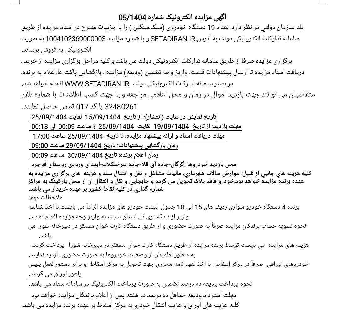 سلام ارادت مزایدات منتشر شده در سایت مزایده لند از منابع رسمی انتشار مزایدات استخراج می‌شود و این آگهی ها همه بدون تصرف و تغییر انتشار داده می‌شود. برای اطلاعات آدرس، زمان و مکان مزایده متن آگهی را ملاحضه و مطالعه بفرمایید. برای خدماتی که ما می‌توانیم در خدمت باشیم از طریق کانالهای ارتباطی ما در واتساپ، تلگرام، اینستاگرام و پلتفرم های ملی مثل روبیکا و بله اقدام بفرمایید.شماره 09053333516 بر روی تمامی این شبکه ها فعال است.در صورت شرکت کردن مستقل در مزایدات لطفا توجه به هزینه ها و ریسک های موجود داشته باشید و تحلیل های درست را ابزار پیشنهاد قیمت قرار دهید.
