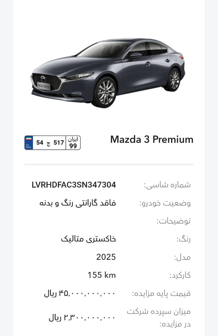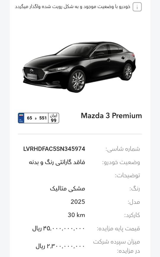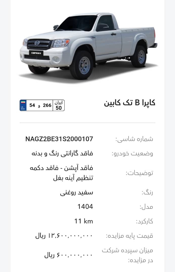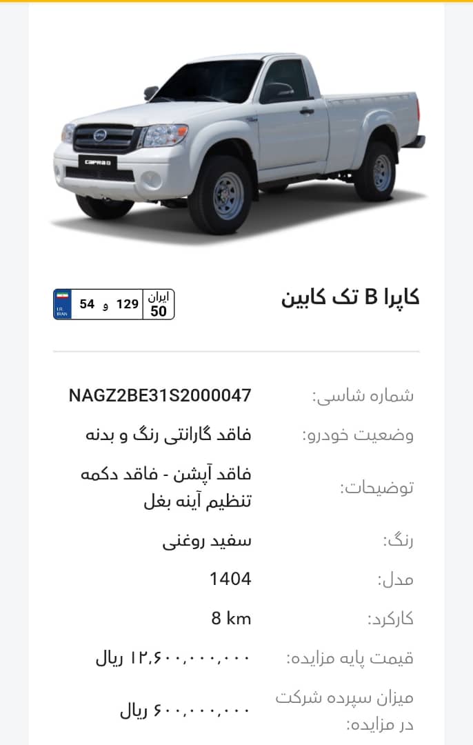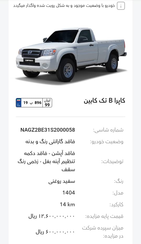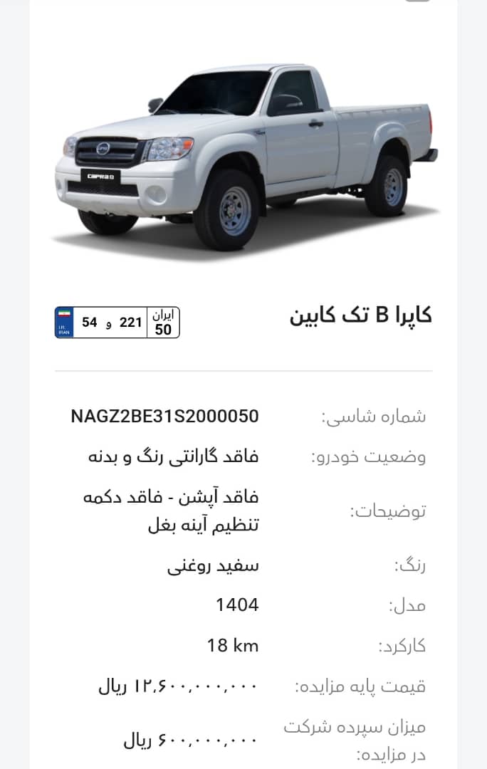 این مزایده بصورت اینترنتی از طریق سایت این شرکت به آدرس auction.bahman.irبرگزار میشود. خودروها شامل موارد دارای گارانتی و فاقد گارانتی میباشد. خودروها قیمت پایه دارند. برای بازدید همه روز در تایم اداری در روزهای غیر تعطیل به آدرس تهران، کیلومتر 11جاده مخصوص، انبار بهمن موتور مراجعه کنید