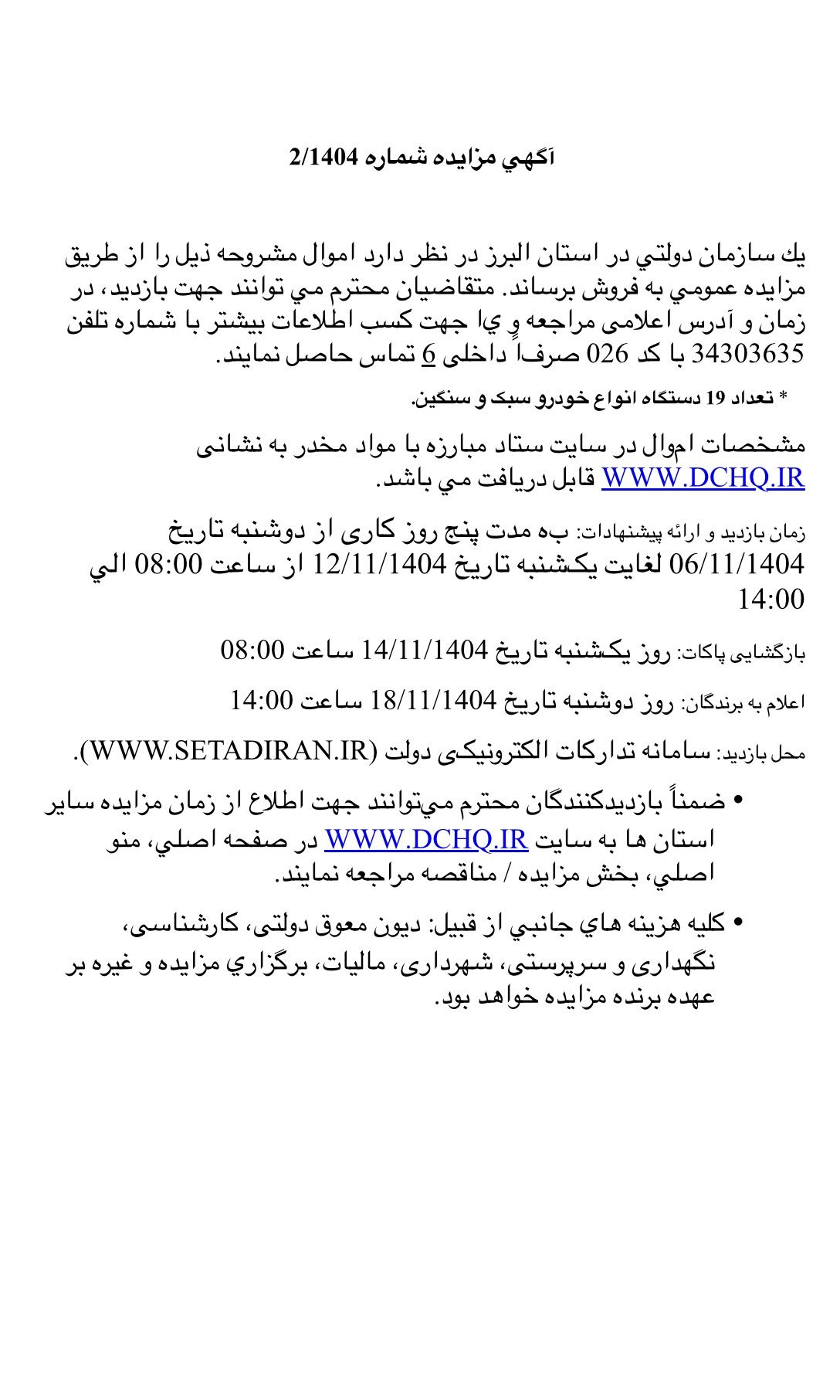 تعداد 19خودرو موجود در مزایده سازمان دولتی بصورت آنلاین از طریق سایت ستاد به آدرسwww.setadiran.irتدارکات الکترونیک دولت سلام ارادتبصورت موقت مارا در شبکه های اجتماعی داخلی👇روبیکامرکز و مرجع رایگان اطلاع رسانی مزایده های خودروکارشناسی، مشاوره، همراهیhttps://rubika.ir/mozaedelandبله👇«مزایده لند(مزایده خودرو)»مزایده لند سالهاست رایگان مزایده خودرو منتشر میکند. درآمد ما از کارشناسی،مشاوره و همراهی کسب میشود.🆔 شناسه:https://ble.ir/mozaedelandو البته سایت ما به آدرس 👇www.mozaedeland.irدنبال کنید🙏😔